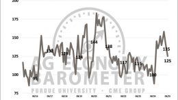 read MoreFarmer sentiment dipped for the third straight month in August, with the Purdue University/CME Group Ag Economy Barometer Index falling 10 points to 125. Producers expressed markedly less…