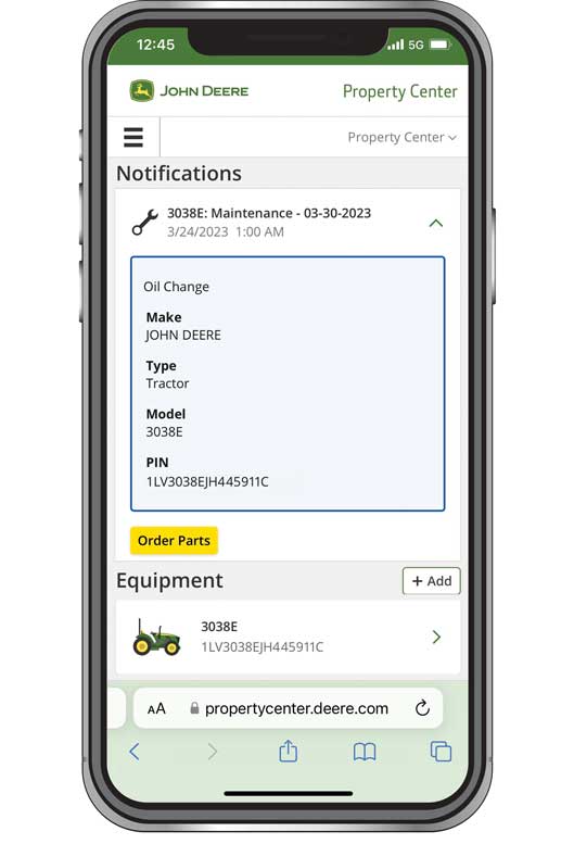 A growing number of property owners of every type are looking for ways to manage their equipment and the work it does. Because of this, John Deere has created John Deere Property Center, a mobile-friendly web-based tool that allows you to plan and track maintenance for your equipment, buy parts, and learn how to do key jobs around your yard or acreage.