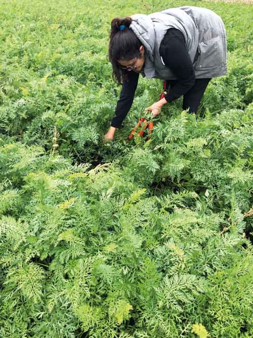 Figure 2. Pulling carrots from the field to observe cavity spot symptoms