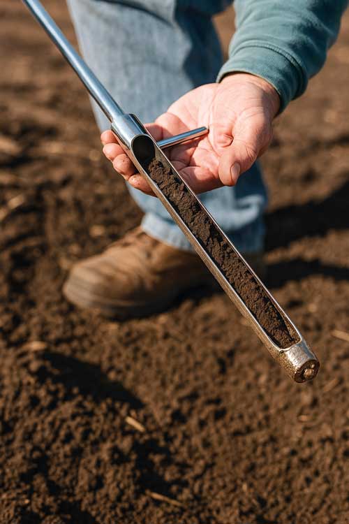 In each field, four sites measuring 10 x 10 meters (11 x 11 yards) were selected and marked using GPS. These sites were spaced 50 to 100 meters apart. At each site, approximately 10 soil cores were collected in a W-pattern using a soil sampler to a depth of 20 cm (Fig. 3). Samples were sent to laboratories for soil nutrient analysis and microbial identification.