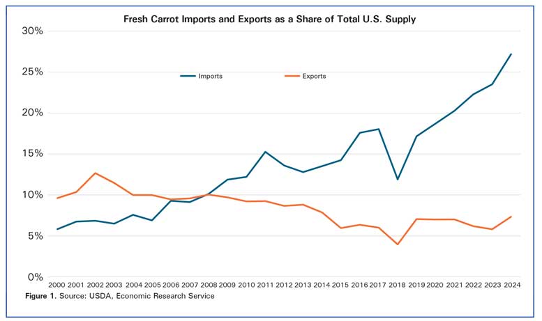 As trade policy pressure continues in one form or another, it is important that the U.S. carrot industry observers and participants consider options for expansion to displace imports if barriers or import tariffs make relying on our neighbors for supply less feasible. This pressure emphasizes the vital importance of research and development for productivity growth and for creating carrot products that suit the demands of modern consumers.