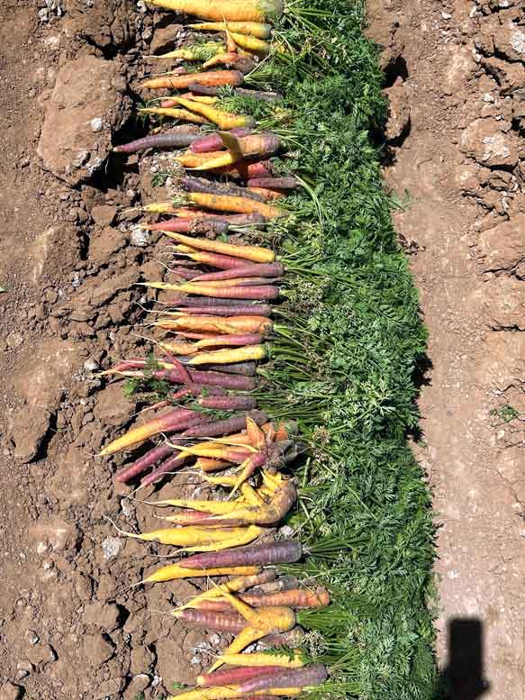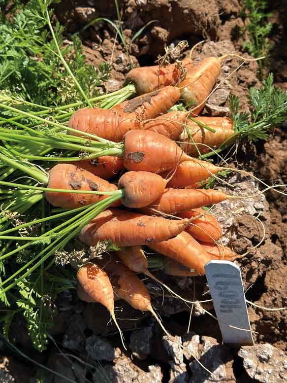 Following a relatively normal growing season, carrots from each entry were dug and displayed with tops attached shortly before a field day in early March. The approximately 50 seed company reps, carrot growers, researchers and students in attendance scored entries for traits such as uniformity, shape, color, size and percentage of marketable roots.